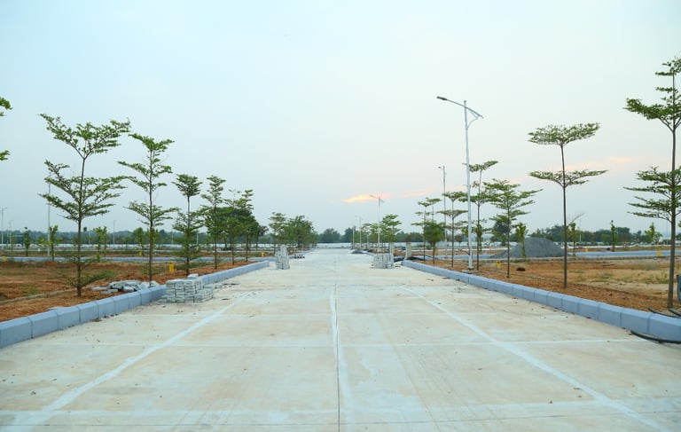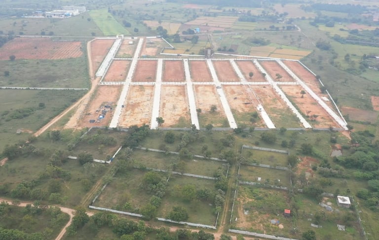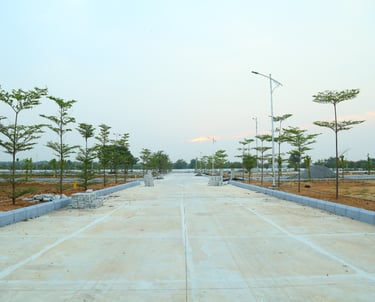Karthik Homes @ Yacharam Nagarjuna Sagar Highway Thoughtfully developed to blend comfort with connectivity, these plots offer wide blacktop roads, clear titles, and peaceful surroundings just minutes from the Future city.